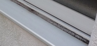 窓のサッシ廻りや建具廻りなどの隙間を埋めるためのシーリング材は、経年と共に硬くなり、隙間ができて雨水の浸入のもとになります。雨水の浸入を防ぐため、定期的なシーリング材の修繕が必要です。